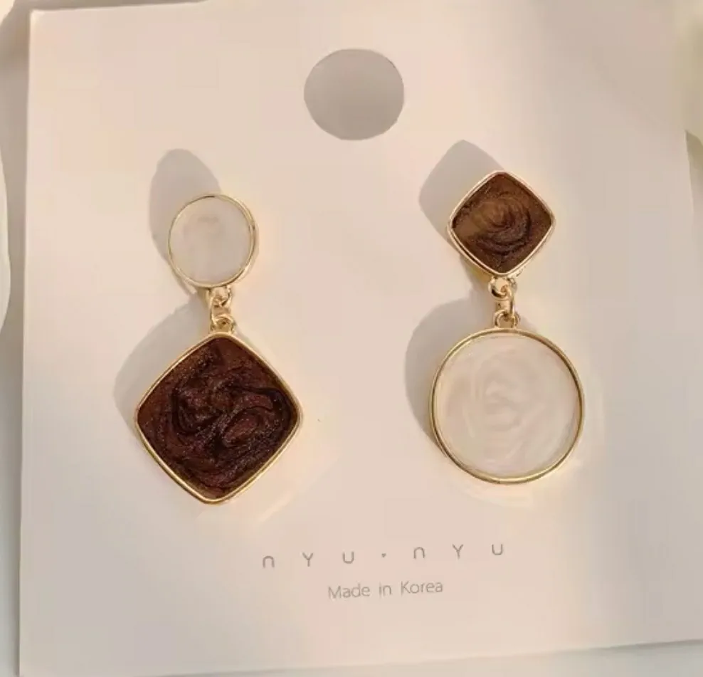 Asymmetric Square & Round Drop Earrings