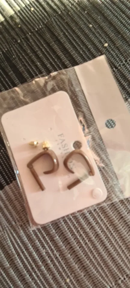 Sleek, sculptural, and a little bit retro. These geometric C-shape drop earrings pair warm brown and soft beige enamel with a polished gold-tone finish—lightweight statement style that works day to night.