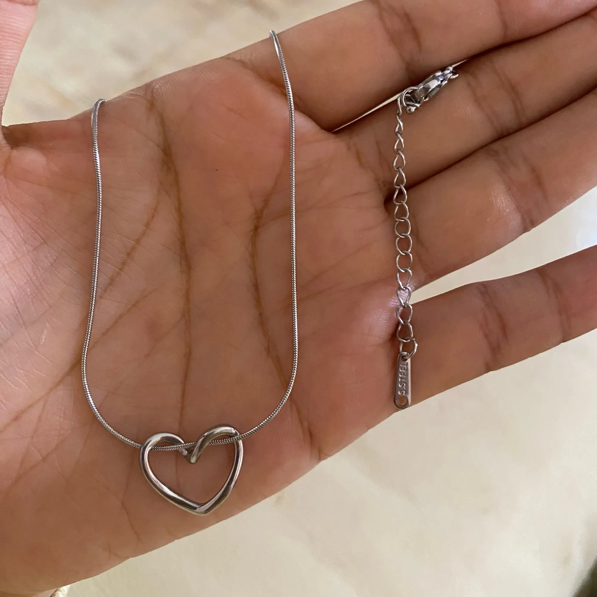 A dainty heart with everyday shine. This minimalist pendant sits on a sleek snake chain and layers effortlessly with your favourite pieces—subtle sparkle for coffee runs, date nights, and everything in between.