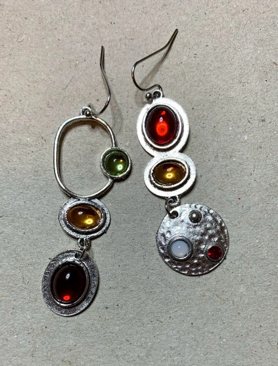 Great vintage touch: a rich red centre stone framed by hollow geometric carving. Lightweight and eye-catching, they’re the perfect pop of colour for nights out or everyday outfits.